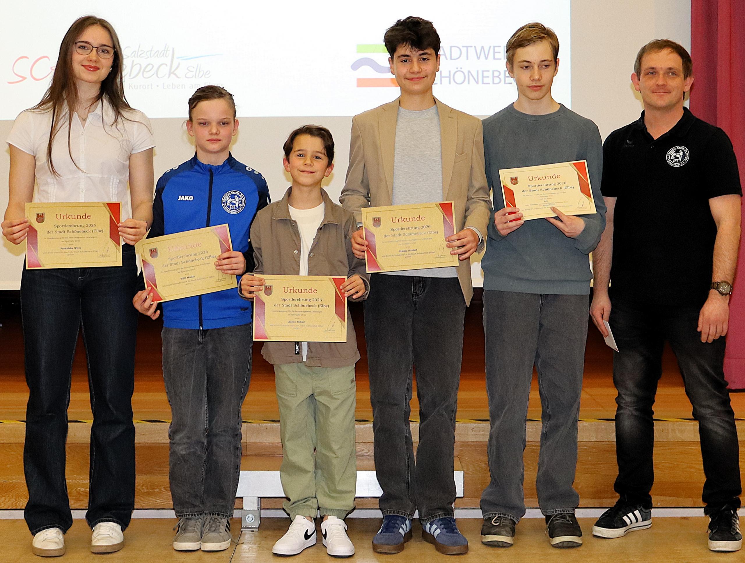 Schönebeck ist eine echte Sportstadt. Das zeigen nicht nur die Vielzahl und Vielfalt der Vereine, sondern vor allem die Menschen, die sie mit Leben füllen. Ob Fußball, Handball, Leichtathletik, Schwimmen, Kanu, Kampfsport, Reiten, Turnen, Volleyball oder viele weitere Disziplinen – überall wird mit Leidenschaft trainiert und Wettkampfgeist gelebt. "Ihr habt im vergangenen Jahr Herausragendes geleistet. Ihr habt trainiert, gekämpft, euch durchgebissen. Ihr habt Titel gewonnen, Platzierungen erreicht, persönliche Rekorde aufgestellt. Und ihr habt unsere Stadt über ihre Grenzen hinaus vertreten – auf Landes-, Bundes- und teilweise sogar internationaler Ebene. Damit seid ihr Botschafterinnen und Botschafter unserer Stadt. Wenn Euer Name bei einem Wettkampf aufgerufen wird, fällt auch der Name Schönebeck. Und das erfüllt uns mit Stolz."