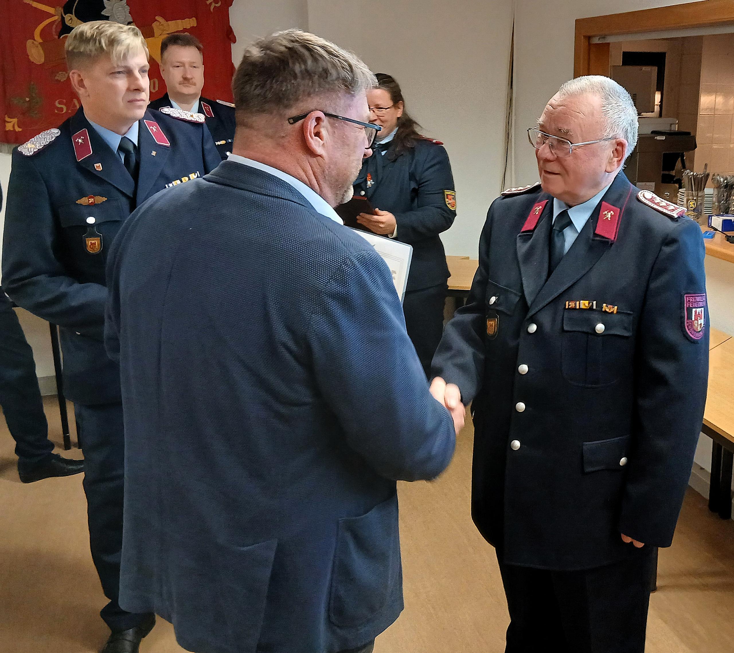 Besonders in Erinnerung geblieben ist der Einbruch gleich zum Auftakt in 2025. Dabei wurde das Auto aufgebrochen, Technik wurde entwendet. Etwa drei Monate später wurde Diebesgut in Berlin gefunden, woraufhin auch eine Razzia in Schönebeck durchgeführt wurde, bei der drei weitere Geräte der Feuerwehr gefunden worden waren. Kurios war zudem ein Einsatz, bei dem ein Auto gegen einen Bauhydranten gefahren war. Bis der Schaden behoben war, wurden mehrere Kameraden sehr nass. Sowohl der Brand des Getreidefeldes zwischen Felgeleben und Gnadau als auch der Kellerbrand in der Garbsener Straße beschäftigten die Salzelmener Wehr. Aufgrund des schnellen und professionellen Eingreifens wurde Schlimmeres verhindert, wofür sich der Eigentümer mit einer Geldspende bedankte.