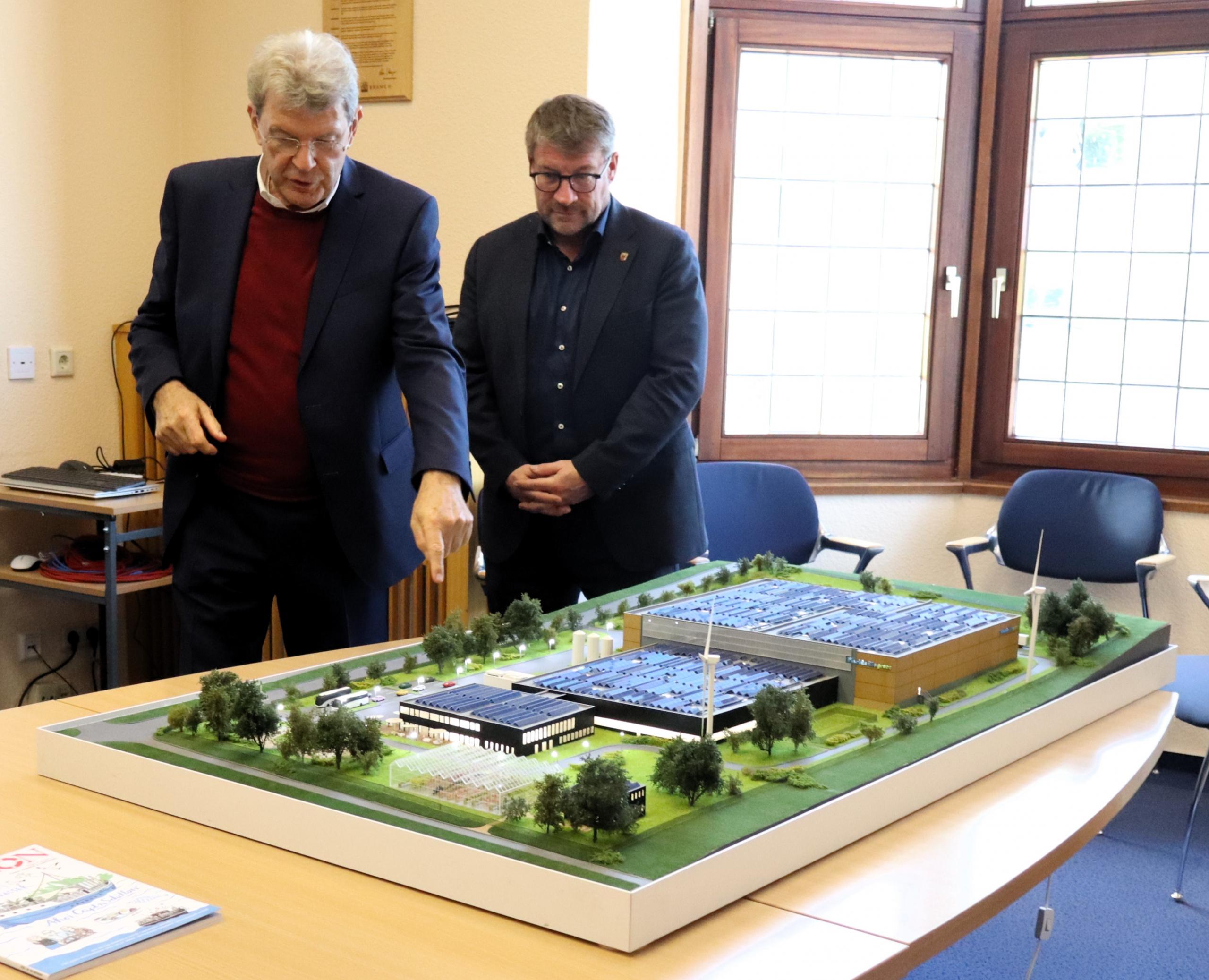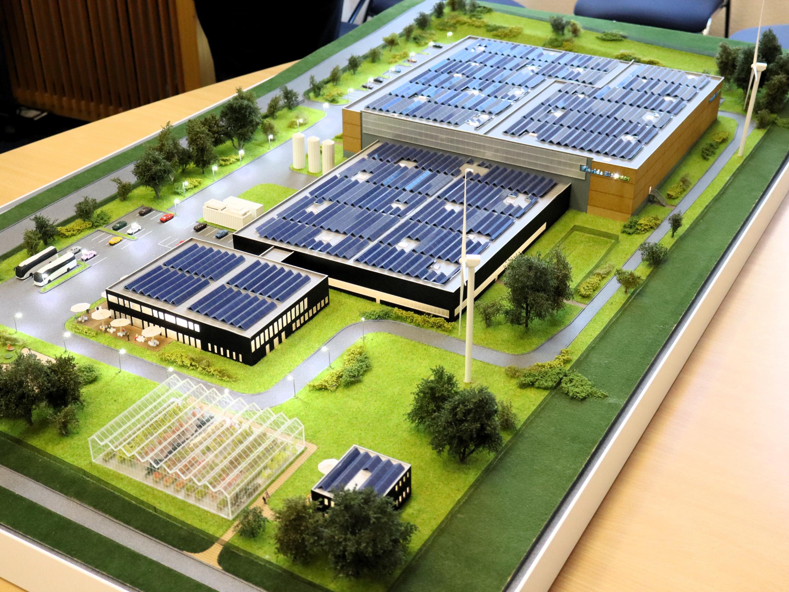 Zum Pressetermin hatte Olaf Höhn ein 3D-Modell im Gepäck. „Da sieht man schon mal, dass viel mehr geplant ist als nur die Produktion hier zu errichten.“ Neben der geplanten 4.000 Quadratmeter großen Produktionshalle soll eine große Logistik-Abteilung entstehen, hinzu kommen ein Bürogebäude mit integriertem Eiscafé und Werksverkauf sowie ein großer Spielplatz für Kinder. „Wir wollen, dass unsere Gäste hier gern Zeit verbringen. Wir wollen auch ein Ausflugsziel sein“, betonte Höhn.