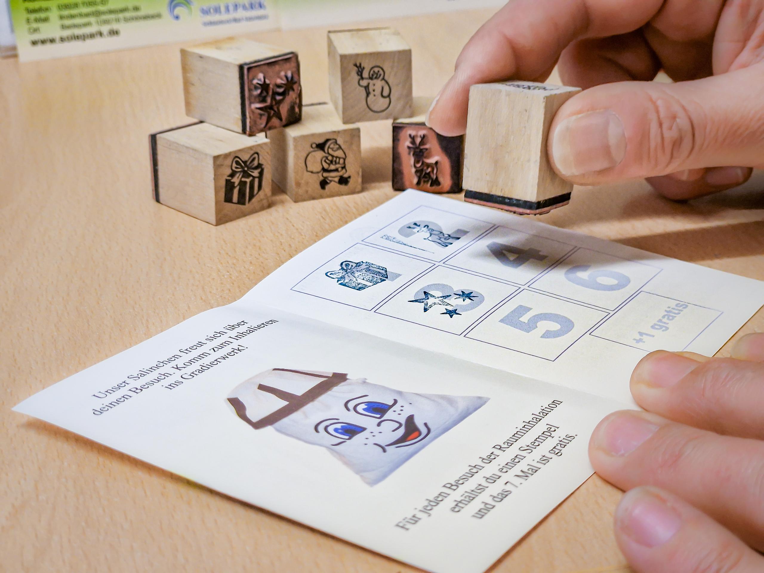 Aber auch an unsere kleinen Besucher haben wir gedacht und eine Stempelkarte erstellt. Für jede Solerauminhalation gibt es einen Motivstempel und der 7 Besuch ist dann gratis.