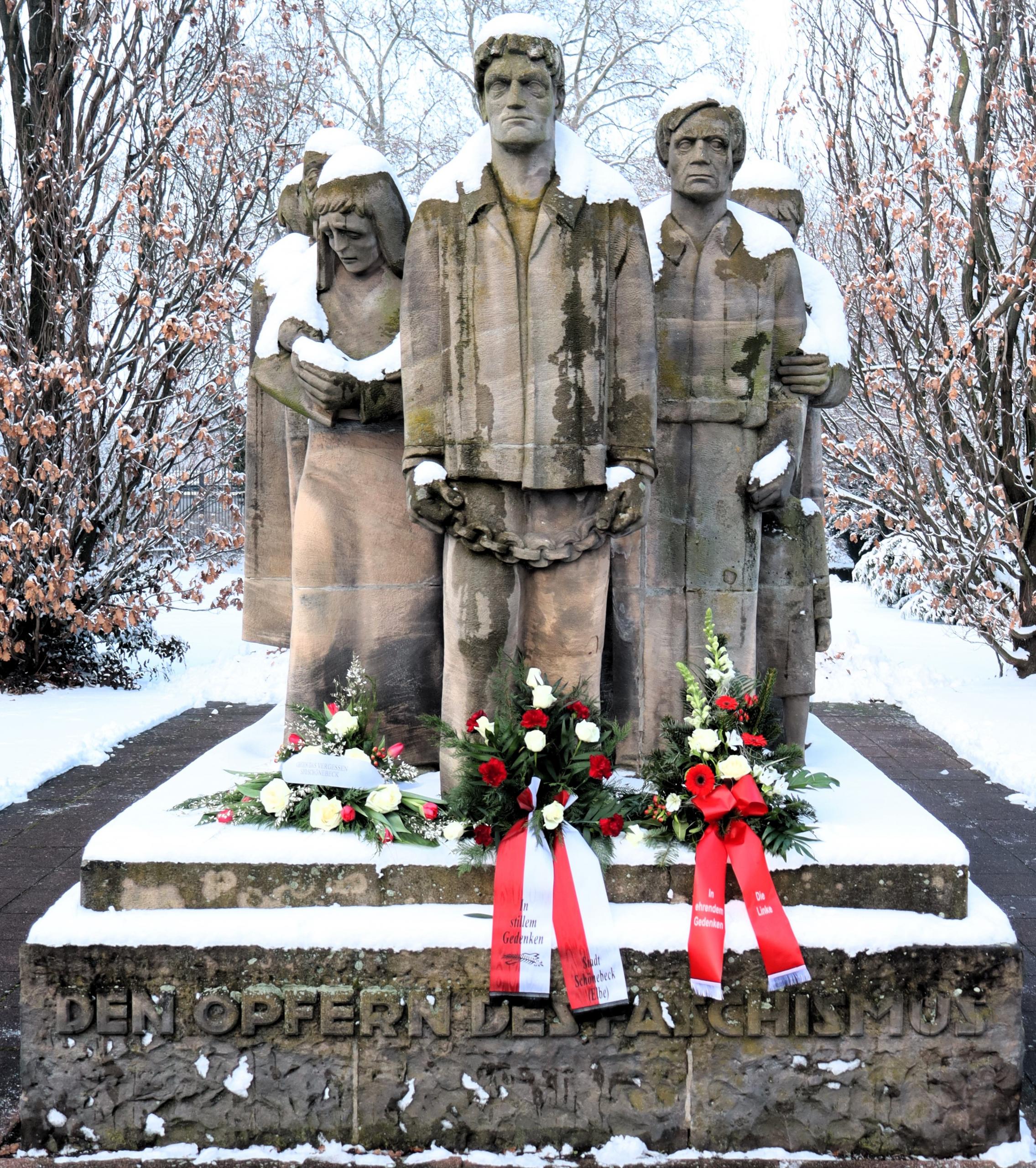 Der 27. Januar ist der „Tag des Gedenkens an die Opfer des Nationalsozialismus“. Am 27. Januar jährt sich der Tag, an dem die Rote Armee 1945 die Vernichtungs- und Konzentrationslager in Auschwitz befreite. Weltweit erinnern Menschen an die Opfer der NS-Diktatur sowie an jene, die Widerstand leisteten und NS-Verfolgte schützten. Auch in Schönebeck (Elbe) legten die Fraktionen CDU/FDP und SPD/Die Linke/Grüne gemeinsam mit der Stadtverwaltung Kränze am Mahnmal Nicolaistraße nieder.