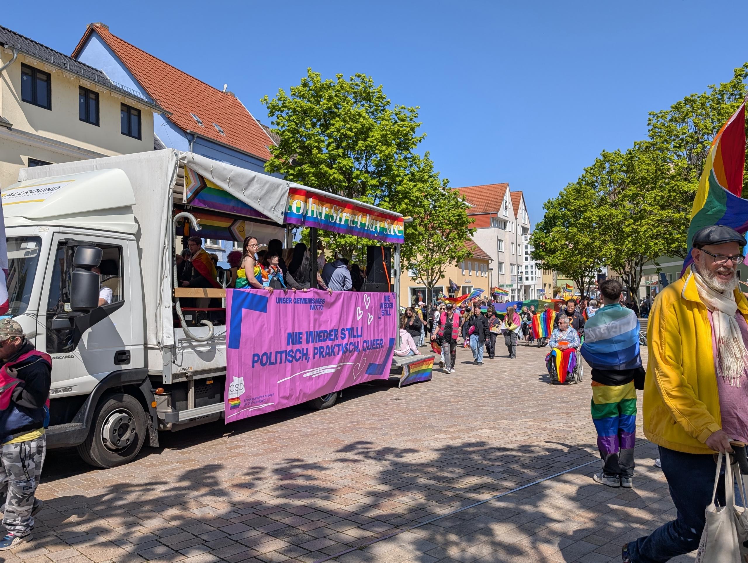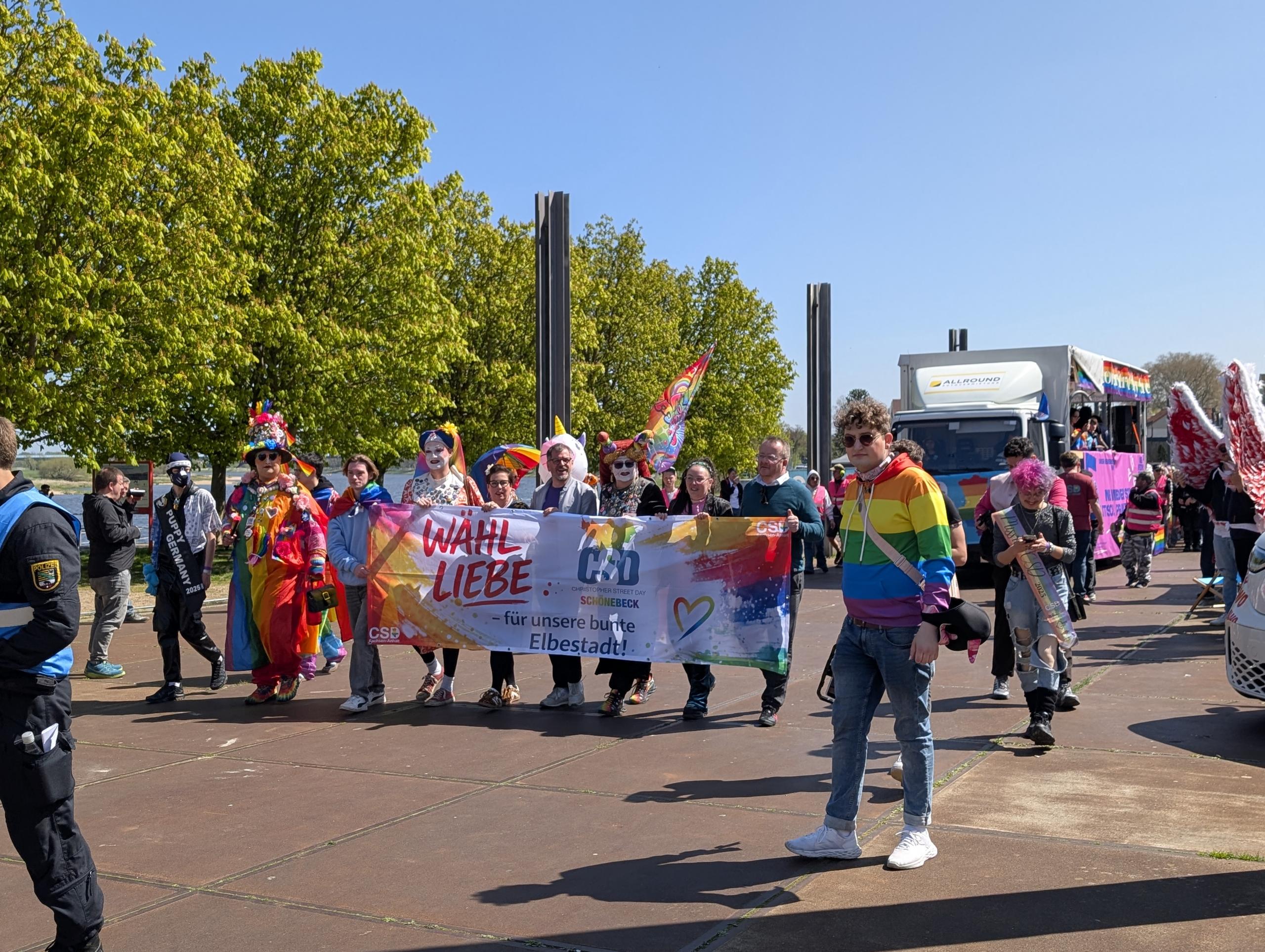 Der diesjährige Auftakt für zahlreiche weitere CSD-Veranstaltungen in Sachsen-Anhalt fand am Wochenende in Schönebeck statt. Unter dem Motto "Wähl Liebe – für unsere bunte Elbestadt!" hat der sechste Schönebecker Christopher Street Day (CSD) am Samstag, 25. April 2026, in der Elbestadt stattgefunden. Die Mitglieder des CSD Magdeburg e.V. organisierten erneut eine farbenfrohe Veranstaltung, die hunderte Menschen zur Demonstration auf die Straßen und auf den Salzblumenplatz an die Elbe lockte. Zwischen Musik, Gesprächen und politischen Beiträgen zeigte sich der CSD als Ort der Begegnung und zugleich als Plattform für Forderungen nach Gleichberechtigung. Bevor der Umzug sich um 13.13 Uhr vom Salzblumenplatz in Bewegung setzte, gab es im Vorfeld eine politische Diskussion. Themen der Diskussion waren unter anderem, die Landeswahl im September 2026, die Entwicklung des Christopher Street Day´s im ländlichen Raum und den Schutz der Vielfalt in der Gesellschaft. Im Anschluss setzte sich der Demonstrationszug in Bewegung. Auch vertretende Personen verschiedener Parteien (Landtagsabgeordnete und Stadträte) waren vor Ort. Mit dem Auftakt in Schönebeck beginnt eine Saison, die nicht nur bunt und laut ist, sondern auch eine klare Botschaft sendet: Vielfalt gehört zur Gesellschaft – und sie braucht Raum, Sichtbarkeit und Schutz.