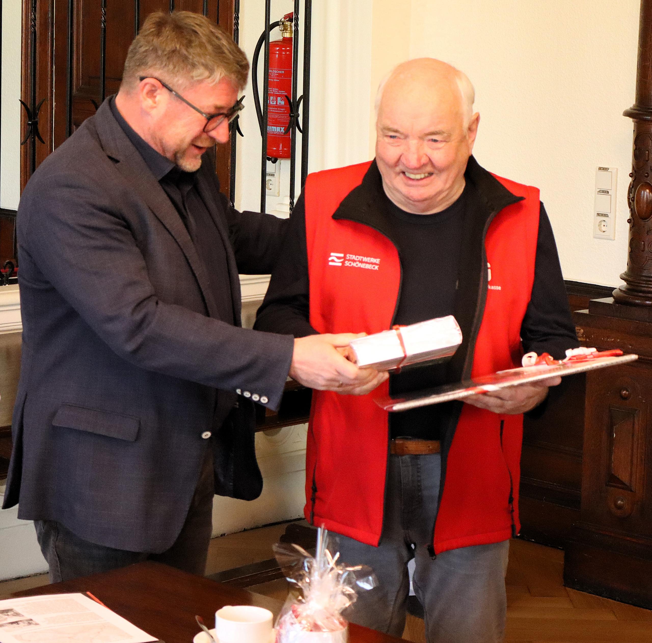 Die "Elberadler" aus Schönebeck (Elbe) sind seit mehr als 30 Jahren aktiv und erkunden nicht nur die Radwege rund um die Stadt, sondern auch darüber hinaus. Dabei erkunden sie historische Gebäude, Denkmäler oder Überlieferungen. Zudem arbeiten sie Rundtouren aus, die sie zuweilen abfahren und die sie mit allerhand Informationen zu den Sehenswürdigkeiten an der Strecke verpacken. Diese sollen sukzessive dem Rathaus übergeben werden, "als weiteres Angebot zu den touristischen Routen wie dem Elberadweg", berichtete Christian Assert bei einem Besuch mit der Radgruppe am Marktplatz. Assert selbst ist vor kurzem 80 Jahre alt geworden und erhielt zu diesem Jubiläum einen Kalender mit Motiven des Soleparks sowie eine gewidmete Festschrift vom Stadtjubiläum.